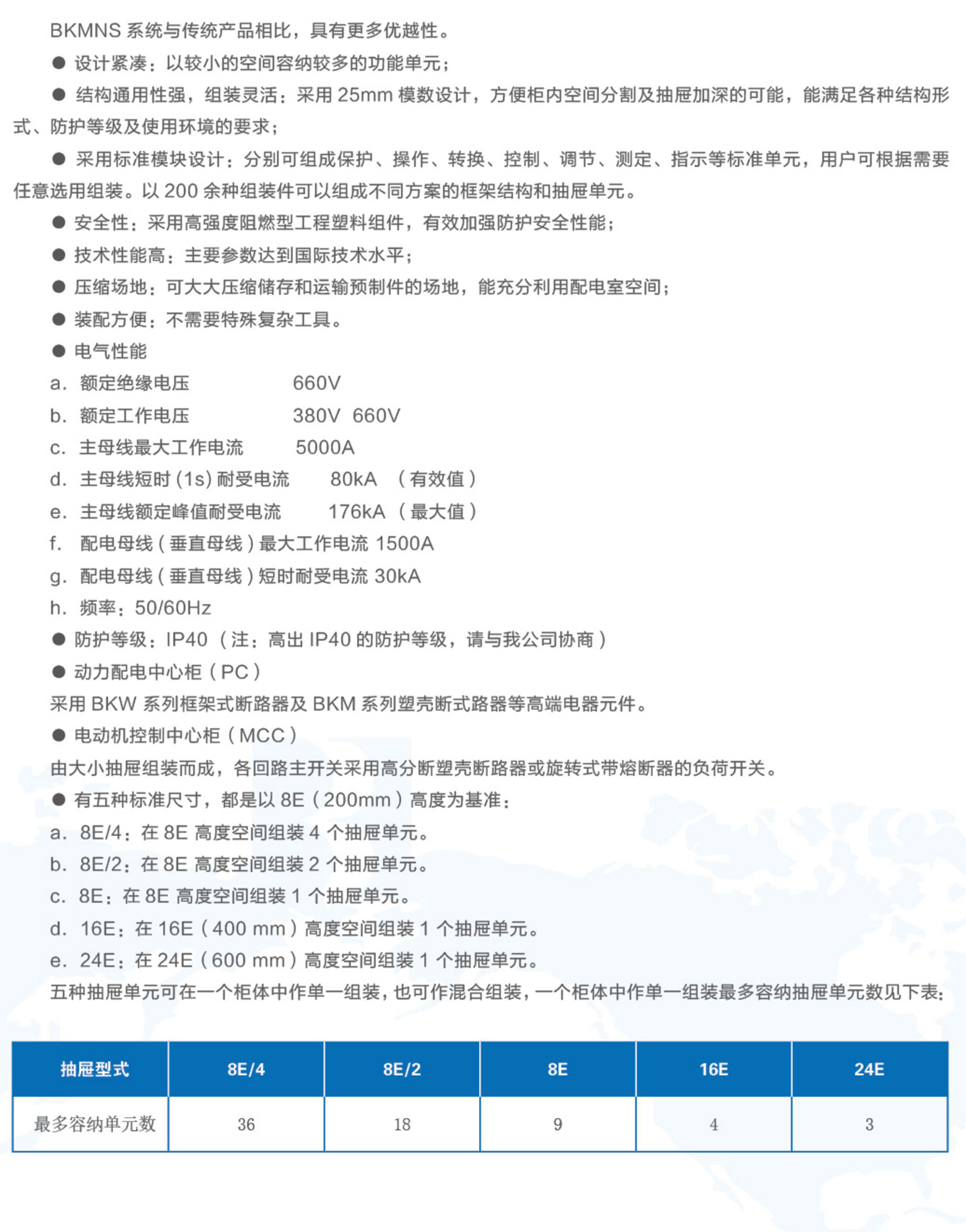BKMNS 型高壓抽出式開關柜是由模塊化組件組裝而成的組合型抽出式高壓開關柜(以下簡稱裝配)。本裝配合用于發電廠、變電站、煤油化工、冶金軋鋼、輕工紡織等廠礦企業和室第小區,高層修建等場所,作為交換50~60Hz、額外任務電壓660V及以下的高壓配電體系的能源、配電和電念頭節制中間、電容彌補等的電能轉換、分派與節制之用。在大單機容量的發電廠、大范圍石化等行業的高壓能源節制中間和電念頭節制中間等電力利用場所時,能知足與計較機接口的特別須要。裝配是按照電力部分、泛博電力用戶及設想部分的請求,為知足不時成長的電力市場對增容、計較機接口、能源集合節制、便利裝配維修、延長變亂處置時候等須要,本著寧靜、經濟、公道、靠得住的準繩設想的新型高壓抽出式開關柜。產物具備分斷,接通才能高、動熱不變性好、電氣計劃矯捷、組合便利、系列性合用性強、布局新奇、防護品級高檔特色,能夠作為新型高壓抽出式開關柜供用戶選用。