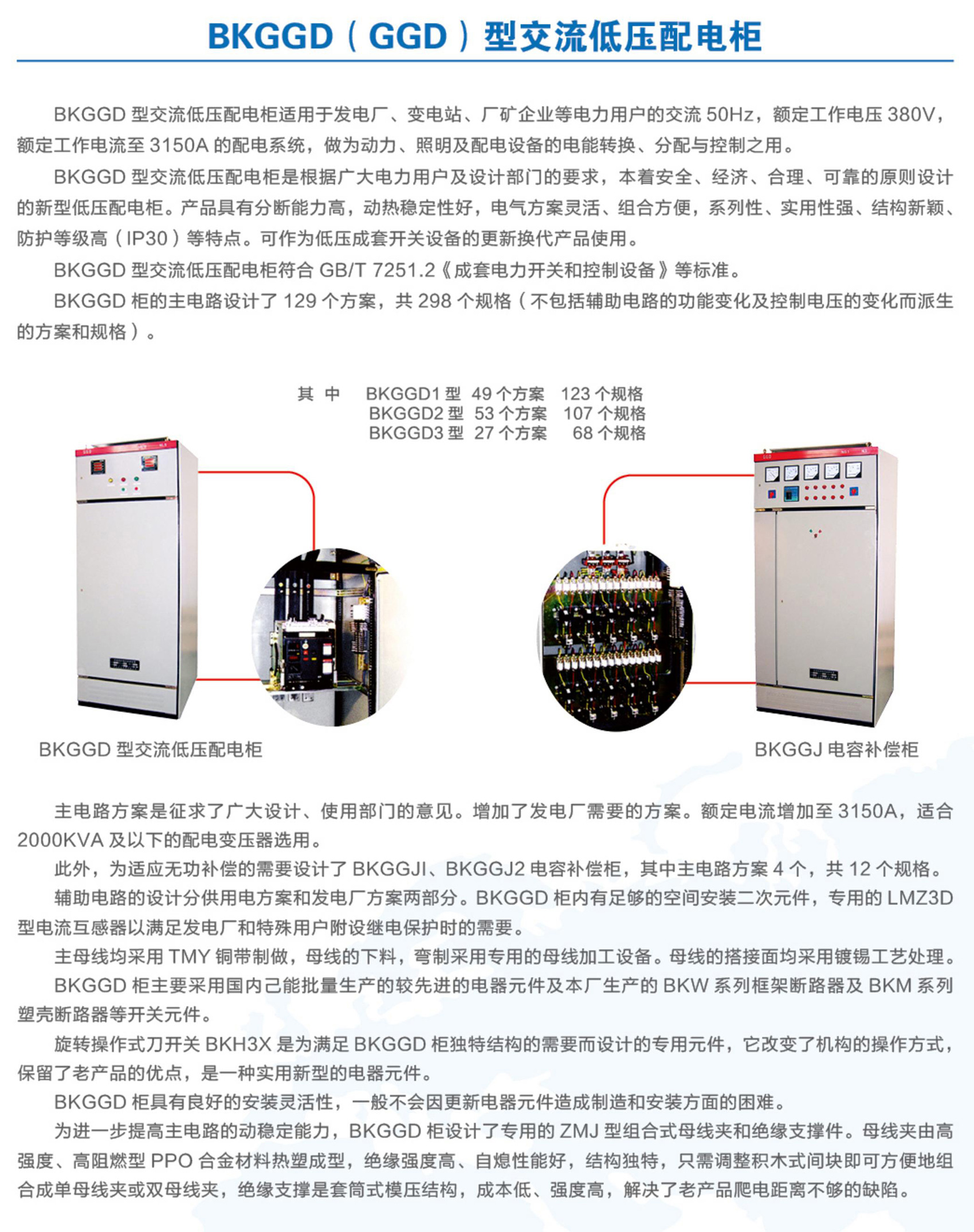 BKGGD型交換高壓配電柜合用于發電廠、變電站、廠礦企業等電力用戶的交換50Hz,額外任務電壓380V,額外任務電流至3150A的配電體系,做為能源、照明及配電裝備的電能轉換、分派與節制之用。BKGGD型交換高壓配電柜是按照泛博電力用戶及設想部分的請求,本著寧靜、經濟、公道、靠得住的準繩設想的新型高壓配電柜。產物具備分斷才能高,動熱不變性好,電氣計劃矯捷、組合便利,系列性、合用性強、布局新奇、防護品級高檔特色。可作為高壓成套開關裝備的更新換代產物利用。