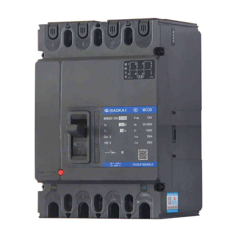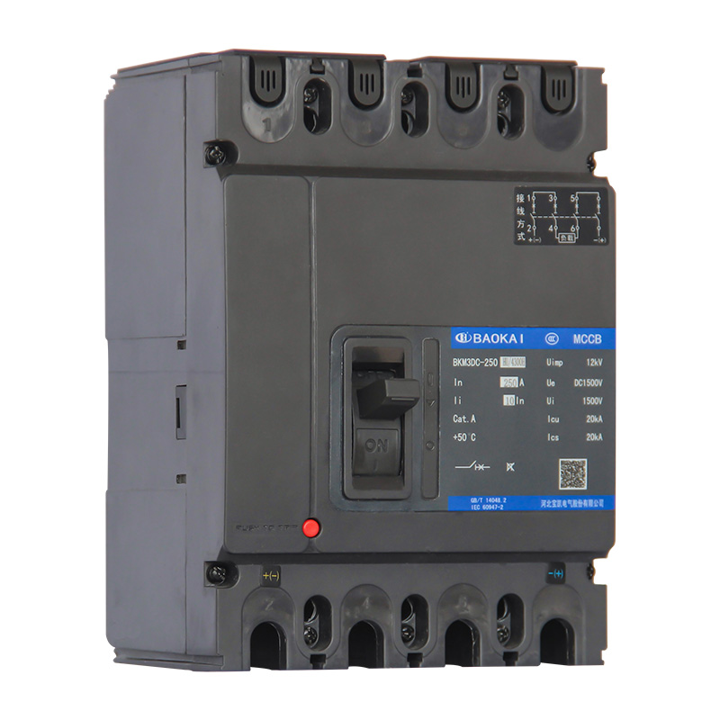 BKM3DC-HU系列直流塑料外殼式斷路器合用于直流體系利用情況,額外絕緣電壓DC1500V,額外任務電壓至DC1500V,額外電流至500A的配電收集中。本系列斷路器具備過載、短路掩護功效,能掩護線路和電源裝備不受破壞。產物普遍用于新動力、電化學儲能、電力發電、輸變電、通信、工控、地產、電力電源、軌道交通、工(公)建等行業中。本系列斷路器具備斷絕功效。本系列斷路器履行規范:IEC 60947-1及GB/T 14048.1 《高壓開關裝備和節制裝備 第1局部:總則》IEC 60947-2及GB/T 14048.2 《高壓開關裝備和節制裝備 第2局部:斷路器》